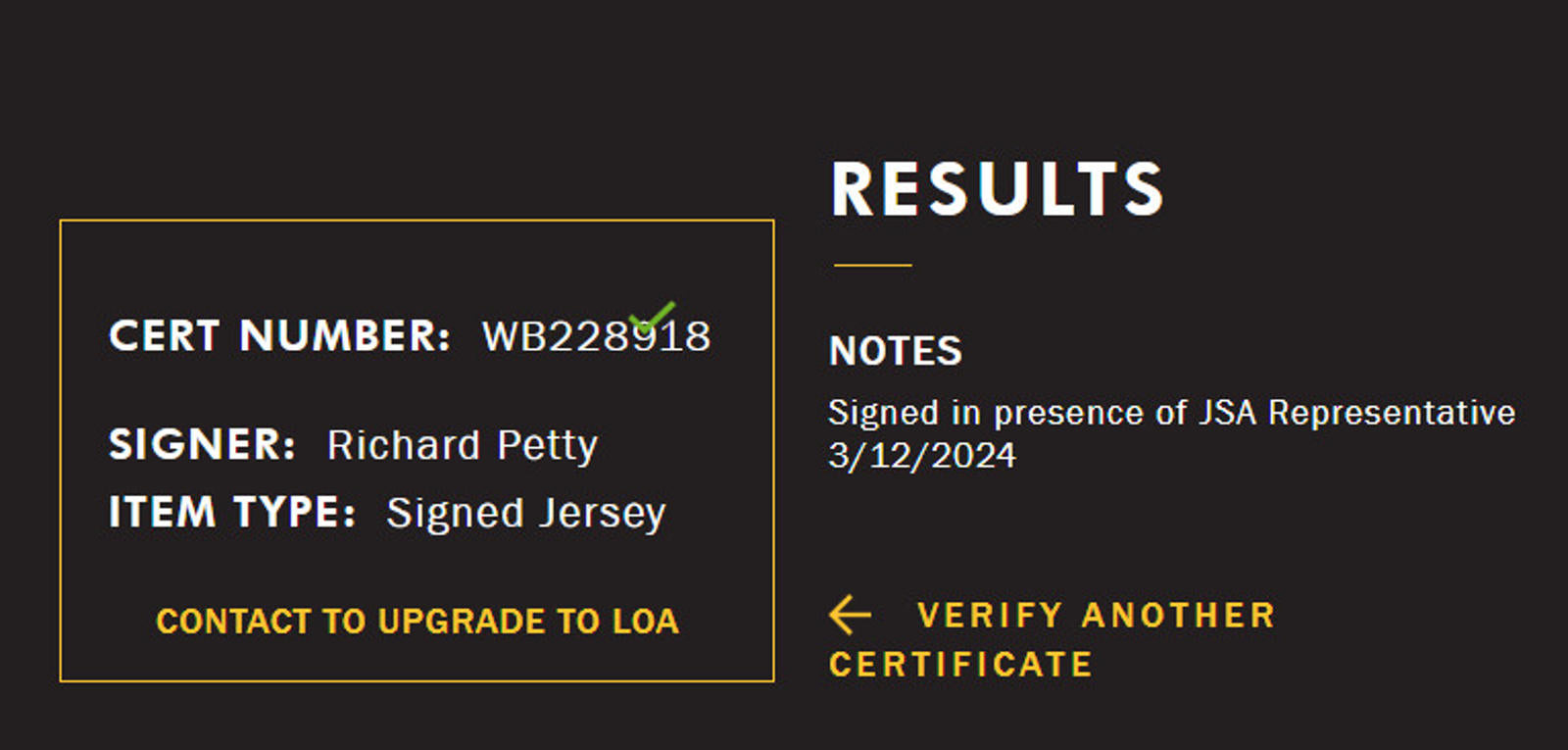 This Richard Petty Signed and Framed Jersey is authenticated by JSA, ensuring that the autograph is genuine. The frame measures 23.5x31.5". The acrylic has 98% UV protection, protecting the autograph and jersey from fading. This is a MUST HAVE for any fan and will make an AMAZING gift! Please feel free to reach out with any questions (: